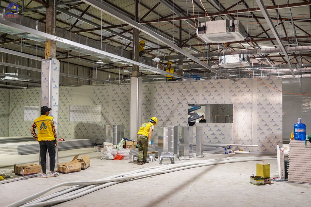 (Chú thích: Đội ngũ kỹ sư và công nhân của HDKK CONS đang tiến hành cải tạo nền nhà xưởng)