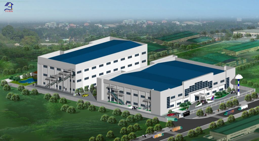 Đặc điểm nổi bật: Thường là nhà xưởng 1 tầng thép tiền chế, có khối văn phòng 2-3 tầng xây dựng phía trước hoặc bên hông, tạo mặt tiền chuyên nghiệp.